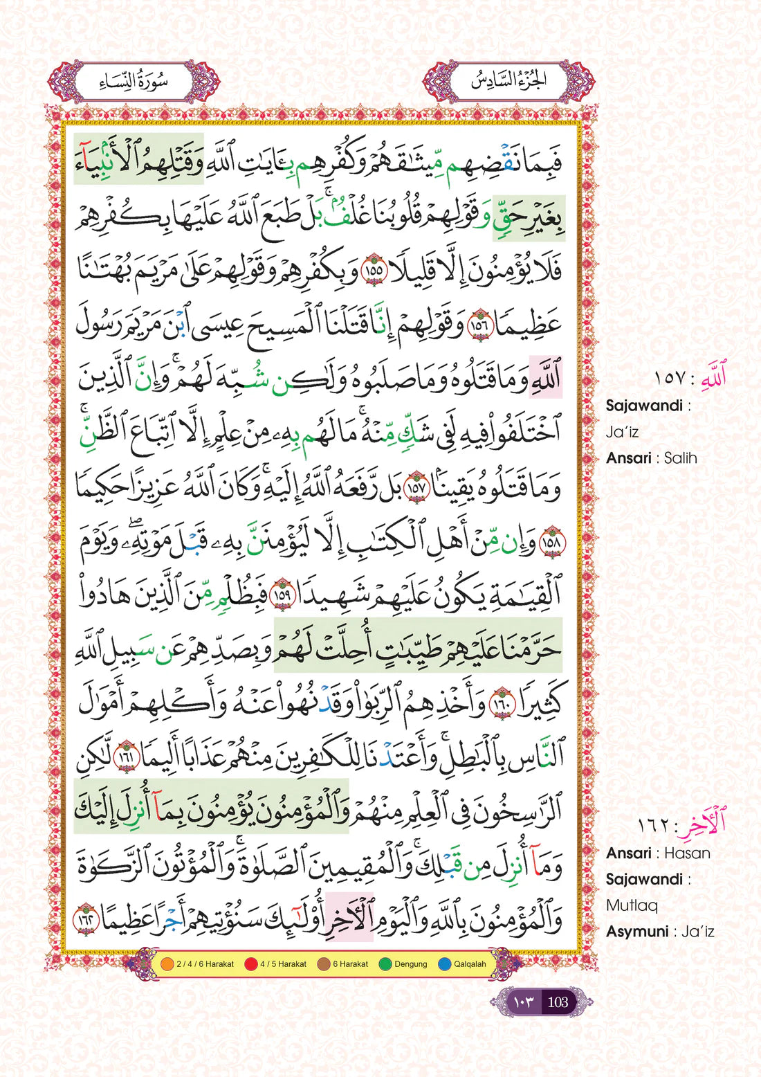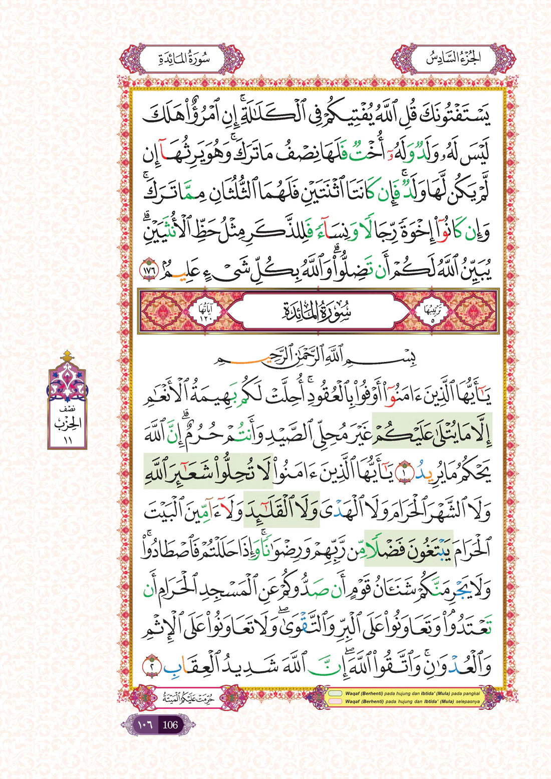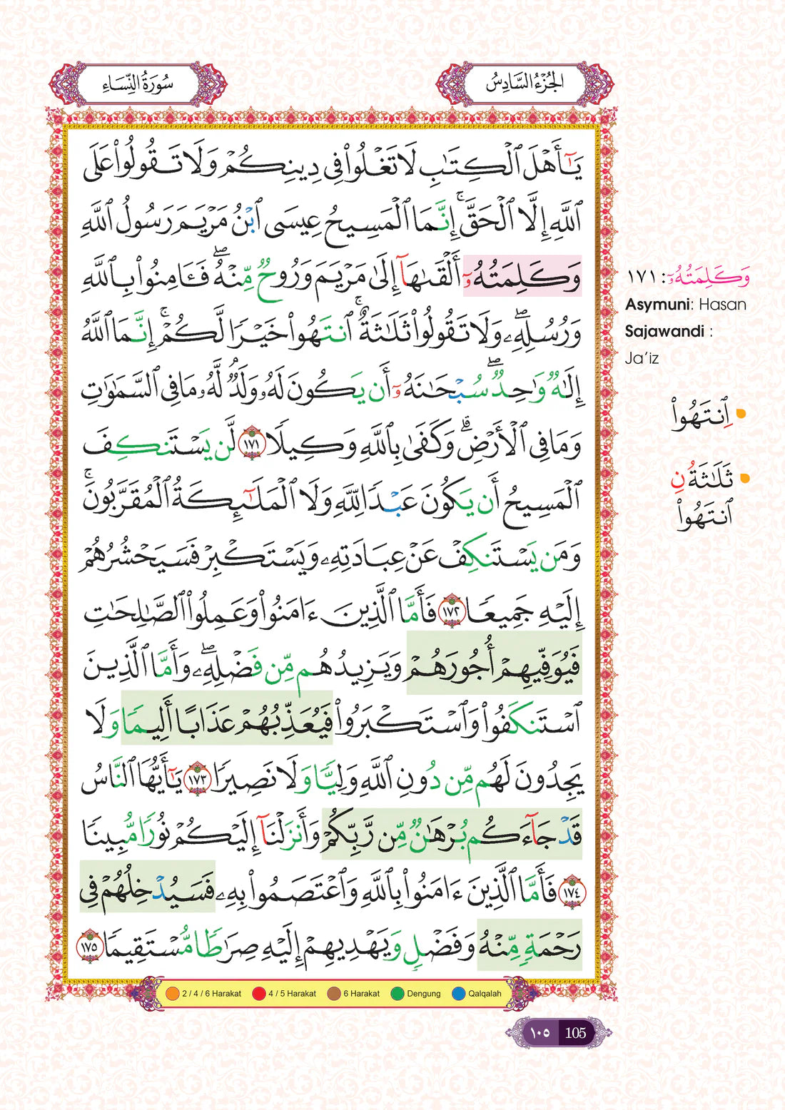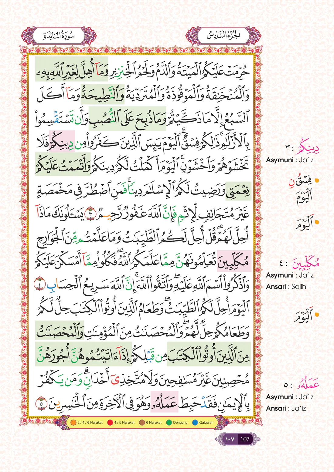 Terdapat PANDUAN WARNA BACAAN TAJWID pada teks al-Quran.