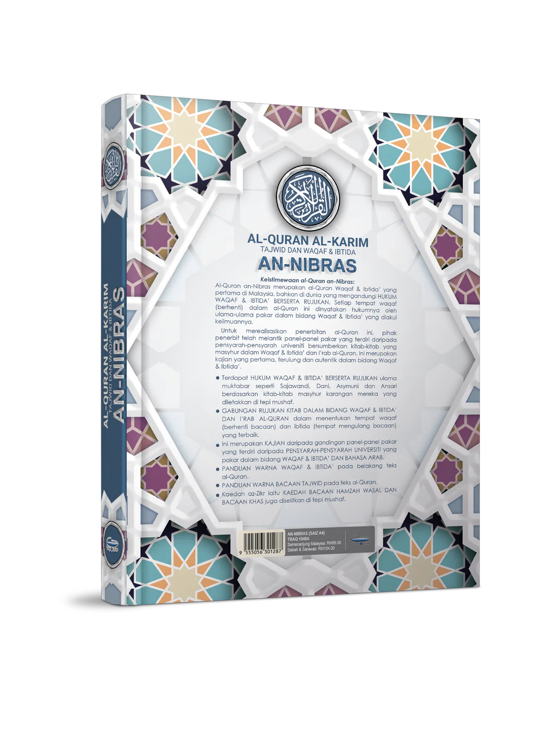 Al-Quran an-Nibras merupakan al-Quran Waqaf & Ibtida’ yang pertama di Malaysia, bahkan di dunia yang mengandungi HUKUM WAQAF & IBTIDA’ BERSERTA RUJUKAN. Setiap tempat waqaf (berhenti) dalam al-Quran ini dinyatakan hukumnya oleh ulama-ulama pakar dalam bidang Waqaf & Ibtida’ yang diakui keilmuannya.