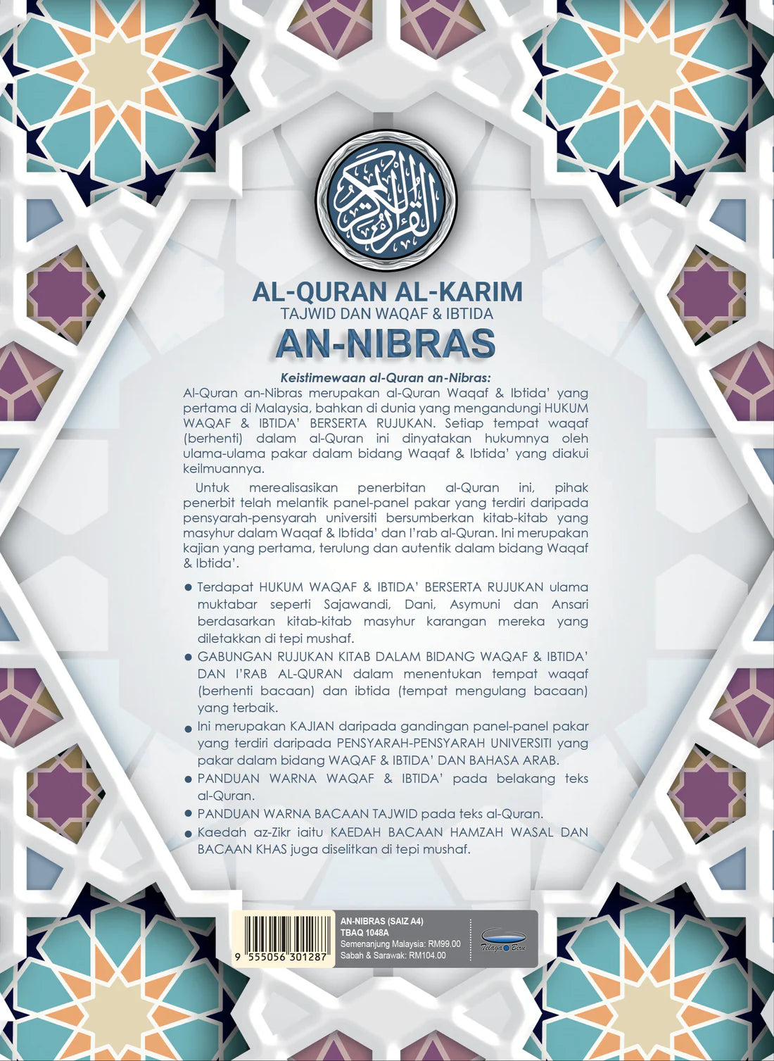 Al-Quran Al-Karim Tajwid Dan Waqaf & Ibtida’ An-Nibras Berserta Hukum Dan Rujukan (A4) - (TBAQ1048A)