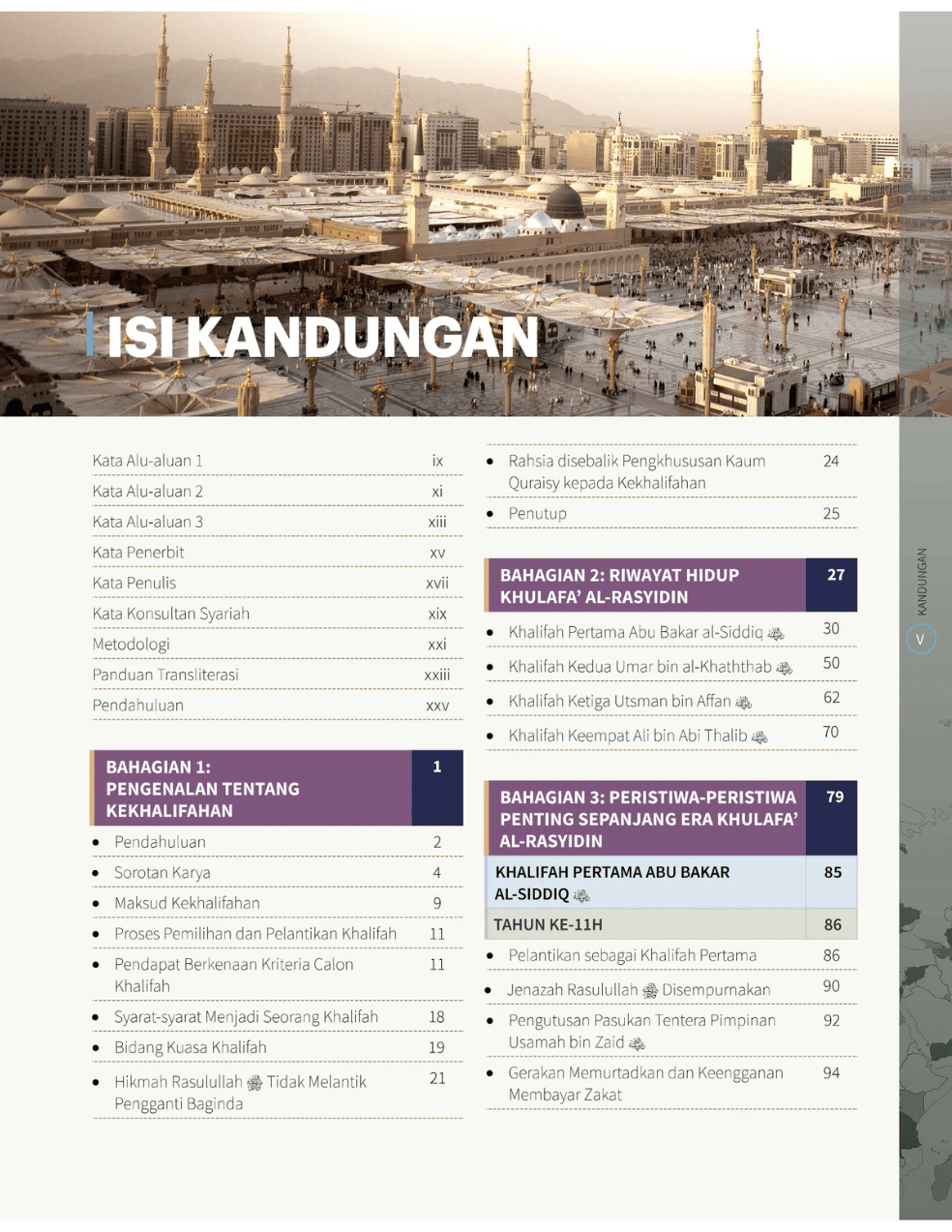 • Buku ini dipersembahkan dengan suatu manifestasi terhadap kaedah pembacaan dan pemahaman sejarah yang diterapkan menerusi sejarah Khulafa’al-Rasyidin.