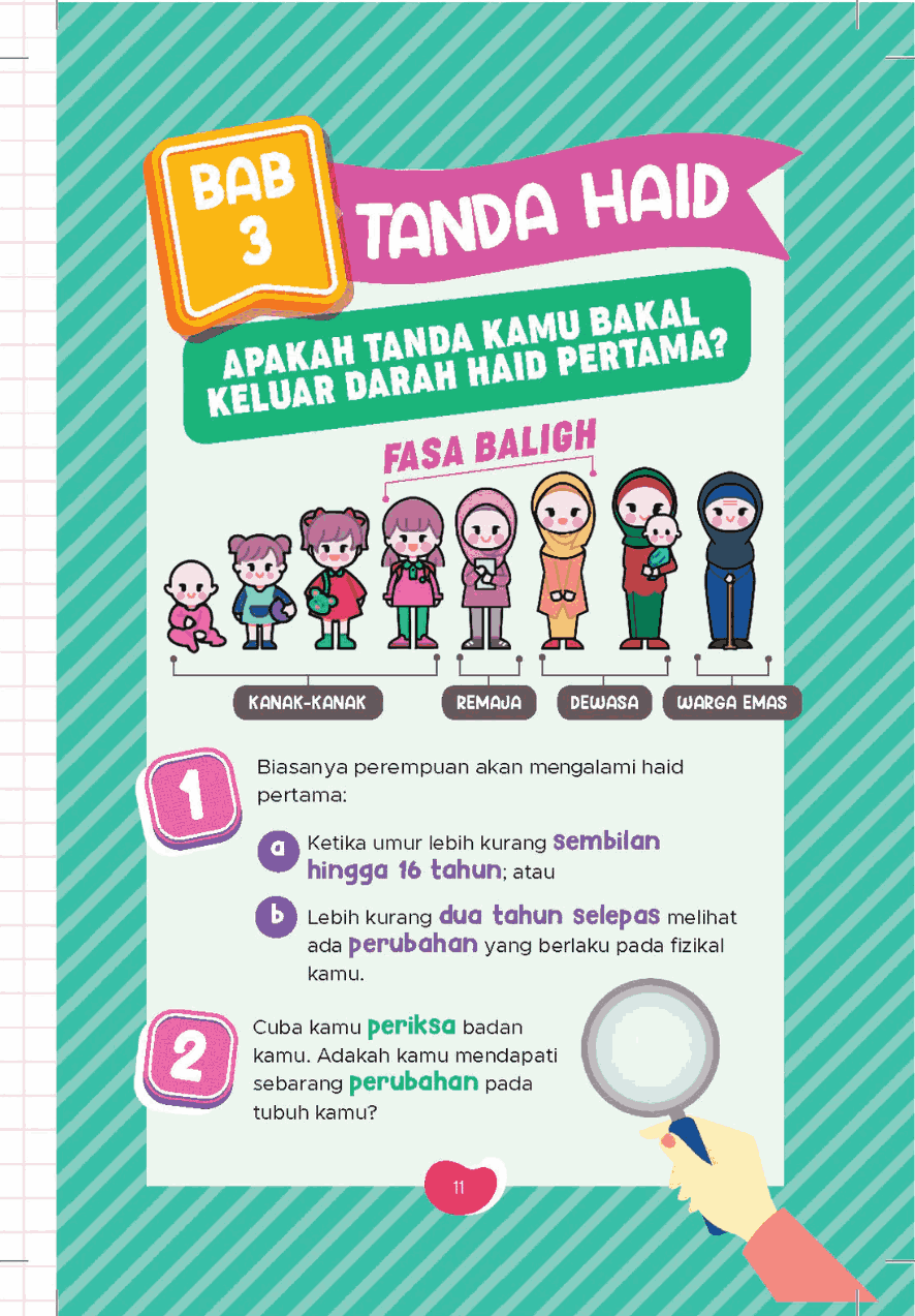 Mengajarkan step by step bagi kanak-kanak perempuan yang baru sahaja didatangi haid pada peringkat umur 9 tahun ke atas.